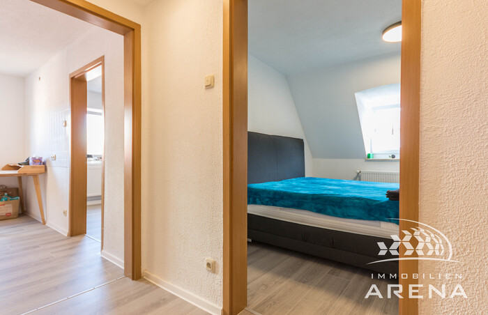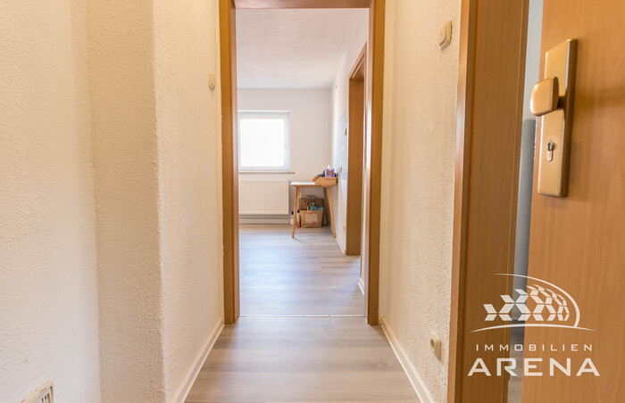 Vom zentralen Flur aus erreichen Sie sowohl das modernisierte Badezimmer als auch das Schlafzimmer und die freundliche Wohnküche. Von hier aus führt der Weg weiter in das gemütliche Wohnzimmer, das mit seiner angenehmen Atmosphäre und dem Blick ins Wohnumfeld überzeugt. Die Wohnung wurde im Jahr 2025 umfassend im Innenbereich aufgewertet: Sowohl die Bodenbeläge, das Badezimmer als auch die meisten Heizkörper wurden erneuert, sodass die Räume heute ein frisches und zeitgemäßes Gesamtbild vermitteln.